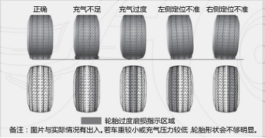 - 使用前請檢查車輛輪胎使用情況,是否漏氣、磨損嚴(yán)重或出現(xiàn)破損,如有上述情況,禁止使用。請及時(shí)調(diào)整前束或更換新的輪胎,否則會損害輪胎壽命或者造成爆胎等危害人身安全的事故。