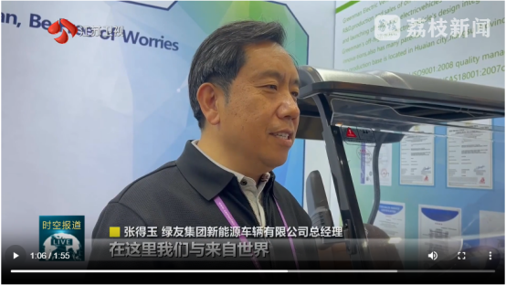江蘇衛(wèi)視電視臺(tái),采訪綠友集團(tuán)新能源車輛有限公司總經(jīng)理張得玉先生,他講到:在這里我們與來自世界的100多個(gè)國家和地區(qū)的采購商,面對(duì)面交流,這種深度的互動(dòng)溝通,讓我們迅速捕捉到國際市場(chǎng)的最新變化。