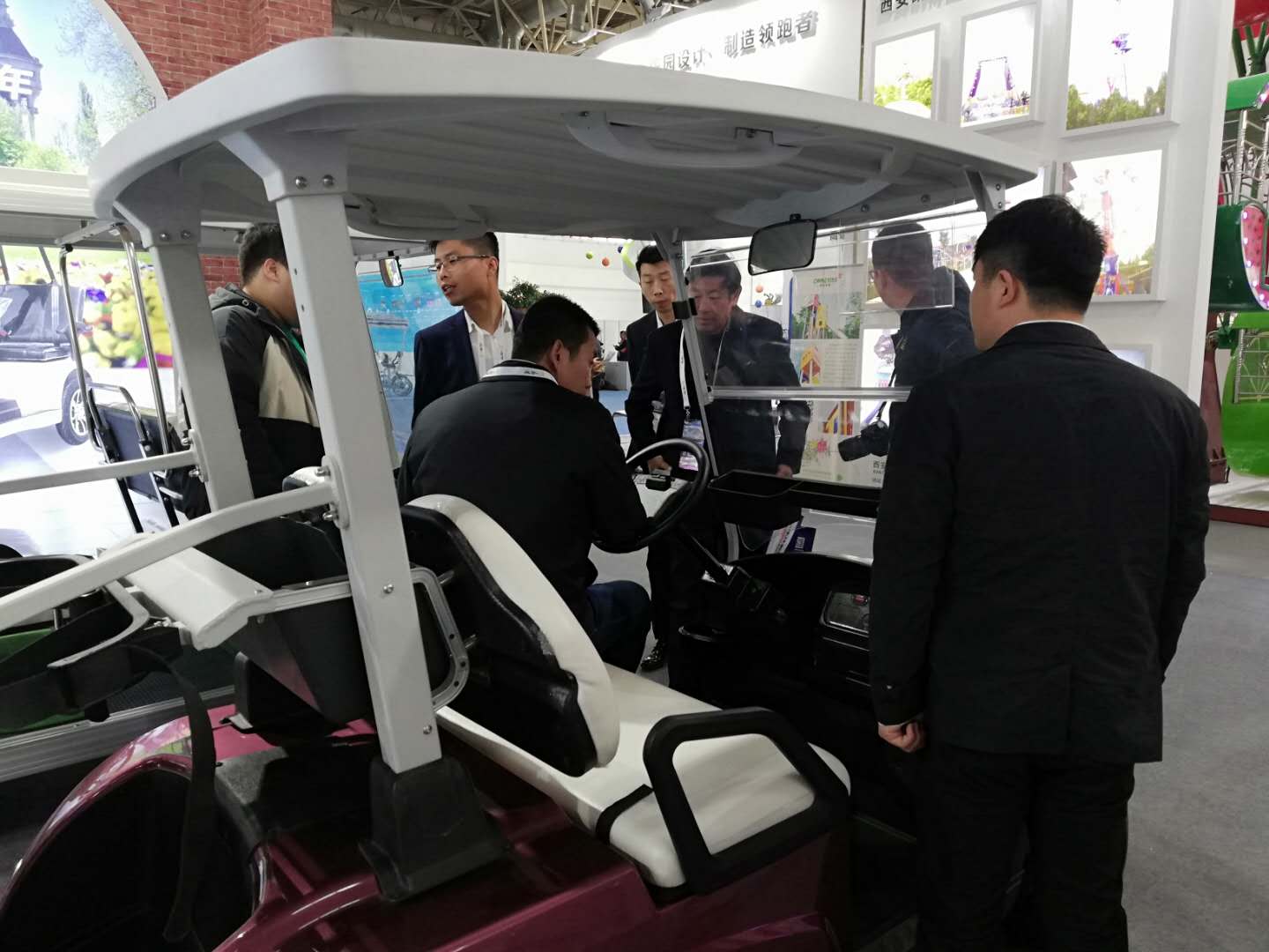 展會上,我公司電動車輛吸引了眾多參觀者的目光,來自景區,游樂場等各行各業有合作意向的專業客戶和我公司工作人員進行詳細地咨詢與洽談。